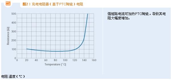 為處理典型故障,比如電容器短路或短路開關(guān)失靈,建議使用J20X系列自我防護(hù)式充電電阻器。在無故障充電中,這些元件的作用就像固定式普通電阻器,可制約充電電流的峰值。當(dāng)發(fā)生故障時(shí),PTC陶瓷的溫度和內(nèi)阻將隨加大的歐姆損耗一同增加(見圖2),并將電流限定在安全級別。