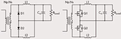 圖1 二極管整流和同步整流