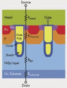 這種方案不僅有助于減小柵-漏疊加電容CGD,還能改善漂移區(qū)阻抗。此外,它也有利于降低導(dǎo)通阻抗與柵極電荷,因為現(xiàn)在可以一方面通過薄柵極氧化層來獲得更低的Vth與導(dǎo)通阻抗,同時又還可以在溝槽底部采用加厚氧化層以獲得最低的CGD。還有一種技術(shù)就是采用電荷平衡或超級結(jié)器件結(jié)構(gòu)。它最初是針對高壓器件開發(fā)的,現(xiàn)在也可用于低壓器件。利用電荷平衡方案,可以在漂移區(qū)獲得兩維電荷耦合,因而能夠在漂移區(qū)采用更高的摻雜濃度,最終降低漂移阻抗。相比前代技術(shù),這種新型中壓功率MOSFET不僅在特征阻抗方面有大幅度改進(jìn),同時其原本相當(dāng)出色的開關(guān)特性也得到進(jìn)一步提高。