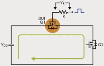 鑒于這種順序,應(yīng)該謹(jǐn)慎選擇式1中的柵極電荷值。由于導(dǎo)通瞬間同步開關(guān)上無電壓,這時不會發(fā)生“米勒效應(yīng)”。因此,得到的柵極電荷值近似等于總柵極電荷QG減去柵極電荷的柵漏極部分QGD。不過,這仍然是對驅(qū)動損耗的樂觀估計,實際中,同步開關(guān)的柵極電荷值并不等于簡單的QG-QGD估算值,這是因為在同步整流中,漏極和源極之間存在一個負(fù)偏壓,而數(shù)據(jù)手冊中的QG和QGD是利用正偏壓測得的。而且,Vth以下的QSYNC曲線類似于Vth以上的斜線,因為同步整流中,零電壓開關(guān)期間這兩個區(qū)域的漏源電壓都為零。同步整流的柵極電荷QSYNC可利用圖6所示的簡單電路,并在Q1和Q2上加載適當(dāng)?shù)尿?qū)動信號來測得。
