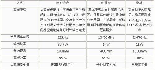長野日本無線公司,于2009年8月宣布開發(fā)出了基于磁共振的充電系統(tǒng)。與電磁感應(yīng)方式相比,磁共振方式具有傳送距離長、停車誤差要求低等優(yōu)點??梢栽?600mm的傳輸距離內(nèi)確保90%的傳送效率。但目前的傳送功率還比較?。s1kW左右),擬定從叉車等使用范圍進(jìn)入市場,伴隨著技術(shù)成熟程度和傳送功率的提高,有望很快進(jìn)入電動車電充電領(lǐng)域。