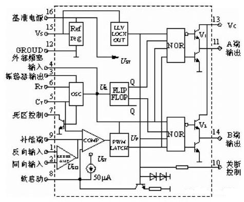 圖2 SG3525引腳及內(nèi)部框圖