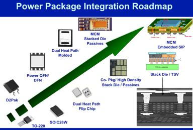 模塊采用的直接敷銅(DBC)技術(shù)增強(qiáng)了電氣性能,而陶瓷襯底(如三氧化二鋁及氮化鋁)能夠同時(shí)提升冷卻效率。封裝-組裝技術(shù)上的改進(jìn)也實(shí)現(xiàn)了幾個(gè)裸片和無源器件的平面共同整合(co-integration),以及旨在增加系統(tǒng)整合度的垂直堆棧技術(shù)。“解開封裝”(Un-packaging)技術(shù)是另一個(gè)有意義的研究領(lǐng)域,此技術(shù)將幾個(gè)布有器件的(populated)的襯底機(jī)械整合,免除殼體、端子及基座。
