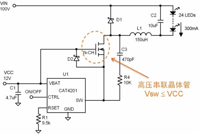 圖3:CAT4201高壓LED驅(qū)動器配置。