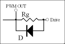 以上討論的是MOSFET ON狀態(tài)時(shí)電阻的選擇,在MOSFET OFF狀態(tài)時(shí)為了保證柵極電荷快速瀉放,此時(shí)阻值要盡量小。通常為了保證快速瀉放,在Rg上可以并聯(lián)一個(gè)二極管。當(dāng)瀉放電阻過(guò)小,由于走線(xiàn)電感的原因也會(huì)引起諧振(因此有些應(yīng)用中也會(huì)在這個(gè)二極管上串一個(gè)小電阻),但是由于二極管的反向電流不導(dǎo)通,此時(shí)Rg又參與反向諧振回路,因此可以抑制反向諧振的尖峰。