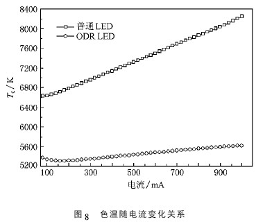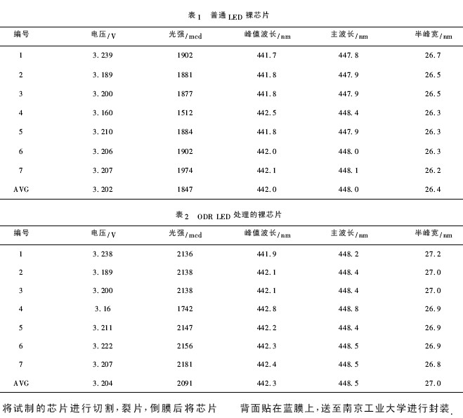 由兩種LED 曲線的解析( 4) ,( 5) 式也可以看出兩種LED 的電壓差差距較小,說明ODR LED 處理對LED 器件電壓基本無影響.
