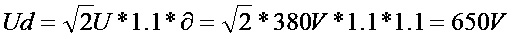 電網(wǎng)電壓為380V,不考慮波動(dòng),空載直流電壓Ud0約為線電壓峰值540V。在帶負(fù)載時(shí),電壓有所下降,電容電壓: