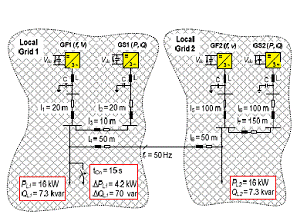 圖6 兩個微型電網(wǎng),每一個包含一個電網(wǎng)形成方式逆變器和一個電網(wǎng)支持方式逆變器