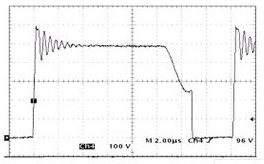 圖6 380V DC輸入80W滿載輸出時(shí)開關(guān)管漏-源極電壓波形