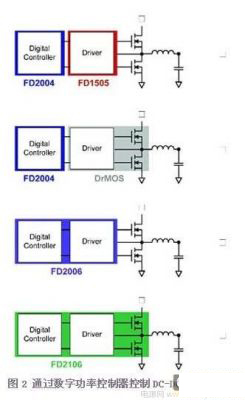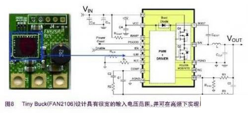 3.最終全集成開(kāi)關(guān)將使功率級(jí)設(shè)計(jì)更迅速易行。除了Digital-DC系列的FD2106之外,F(xiàn)AN210x TinyBuck系列也可為3A FAN2103和6A FAN2106應(yīng)用提供全集成同步降壓功能(圖8)。