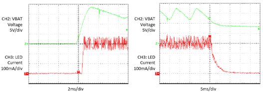 輸出電容C2建議至少為4.7 μF,以減少輸出紋波。較大容量的C2將有效抑制輸出紋波,同時可提高幾毫安的輸出電流。不過,由于其對總能效的貢獻(xiàn)微不足道,且人眼無法感知高頻波動,沒有必要使用大于10 μF的電容。L的值建議為22 μH,以將開關(guān)頻率設(shè)置在約為150 kHz。LED電流范圍為0至350 mA,所以800 mA左右的電感有效額定電流就足夠了。
