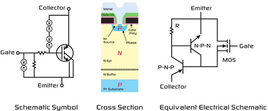 很多年前,IGBT就已成為點火應(yīng)用中的開關(guān)。圖2所示為IGBT的剖面圖。較之于其它技術(shù),IGBT有如下一些重要優(yōu)點: