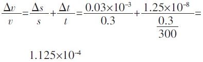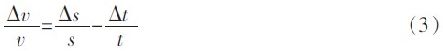 為依據(jù)國(guó)標(biāo)QBT2443-1999 的規(guī)定計(jì)算。規(guī)定一級(jí)鋼卷尺自零點(diǎn)端起到任意線紋的示值誤差限為:Δ=(0.1+0.1L)mm,L 單位為m。若測(cè)試距離取0.3m,Δs 取0.03mm,待測(cè)運(yùn)動(dòng)物體速度為300m/s,那么將數(shù)據(jù)代入式(4)得到系統(tǒng)測(cè)速的最大相對(duì)誤差為: