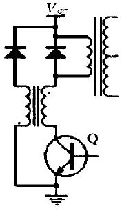 4) 無源回饋開通緩沖電路(圖5) :此電路通過變壓器將磁場貯能回饋到電源。變壓器為雙線繞制,其原邊具有一定電感;幅邊的極性與原邊相反,并且接有反向二極管。管子開通時,原邊承受全部電源電壓,副邊無通電回路。管子關(guān)斷時,副邊感應(yīng)電壓極性換向,當(dāng)其電壓高于電源電壓Vcc 時, 向電源饋送能量。