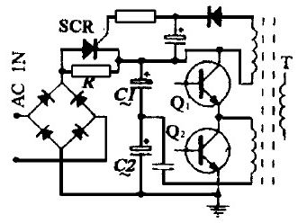 筆者在1000W半橋式開關(guān)電源的設(shè)計中, 首次用一個單向可控硅代替前端AC 輸入整流橋的一個橋臂, 其控制端由主變壓器的一個副繞組來控制(如圖9 所示) .這樣, 在電源接通的初始態(tài), 該整流橋處于半波整流態(tài)。待電源啟動后, 可控硅導(dǎo)通, 整流橋轉(zhuǎn)為全波整流。由此可達到降低啟動電壓的目的。同時, 還可有效地抑止浪涌電流。實踐證明, 該電路簡單可靠很值得大家借鑒。