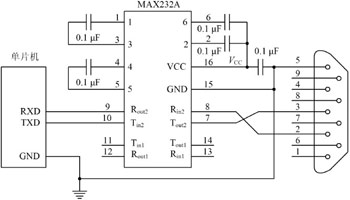 圖6 單片機與MAX232A硬件連接電路