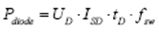 為確保兩個(gè)SR MOSFET之間的互鎖,以避免出現(xiàn)直通電流,必須實(shí)現(xiàn)一定的死區(qū)時(shí)間。因此,在開啟一次側(cè)之前,必須關(guān)斷相應(yīng)的MOSFET。這將導(dǎo)致電流從MOSFET溝道,轉(zhuǎn)而流向MOSFET體二極管,而這又會使漏源極電壓發(fā)生負(fù)電壓降(圖1)。這段時(shí)間被稱為體二極管導(dǎo)通時(shí)間tD。利用下列參數(shù),即可算出二極管功耗:體二極管的正向壓降UD、從源極流向漏極的體二極管電流ISD、體二極管導(dǎo)通時(shí)間tD和電源轉(zhuǎn)換器開關(guān)頻率fsw: