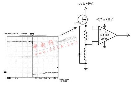 圖 4 PWM 應(yīng)用中應(yīng)進(jìn)行電流檢測,即便在共模電壓降至二極管電壓降大小的負(fù)電壓的回掃期間也要進(jìn)行檢測。