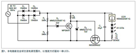 經(jīng)濟(jì)而耐用的簡單混合式電路可用于建筑與室內(nèi)照明用具。這些電路設(shè)計(jì)的效率可能低于復(fù)雜的開關(guān)穩(wěn)壓器,但它們有低成本和簡單的優(yōu)勢,因此具有吸引力。這些電路可用于50Hz或60Hz的85V~265V所有交流電壓。