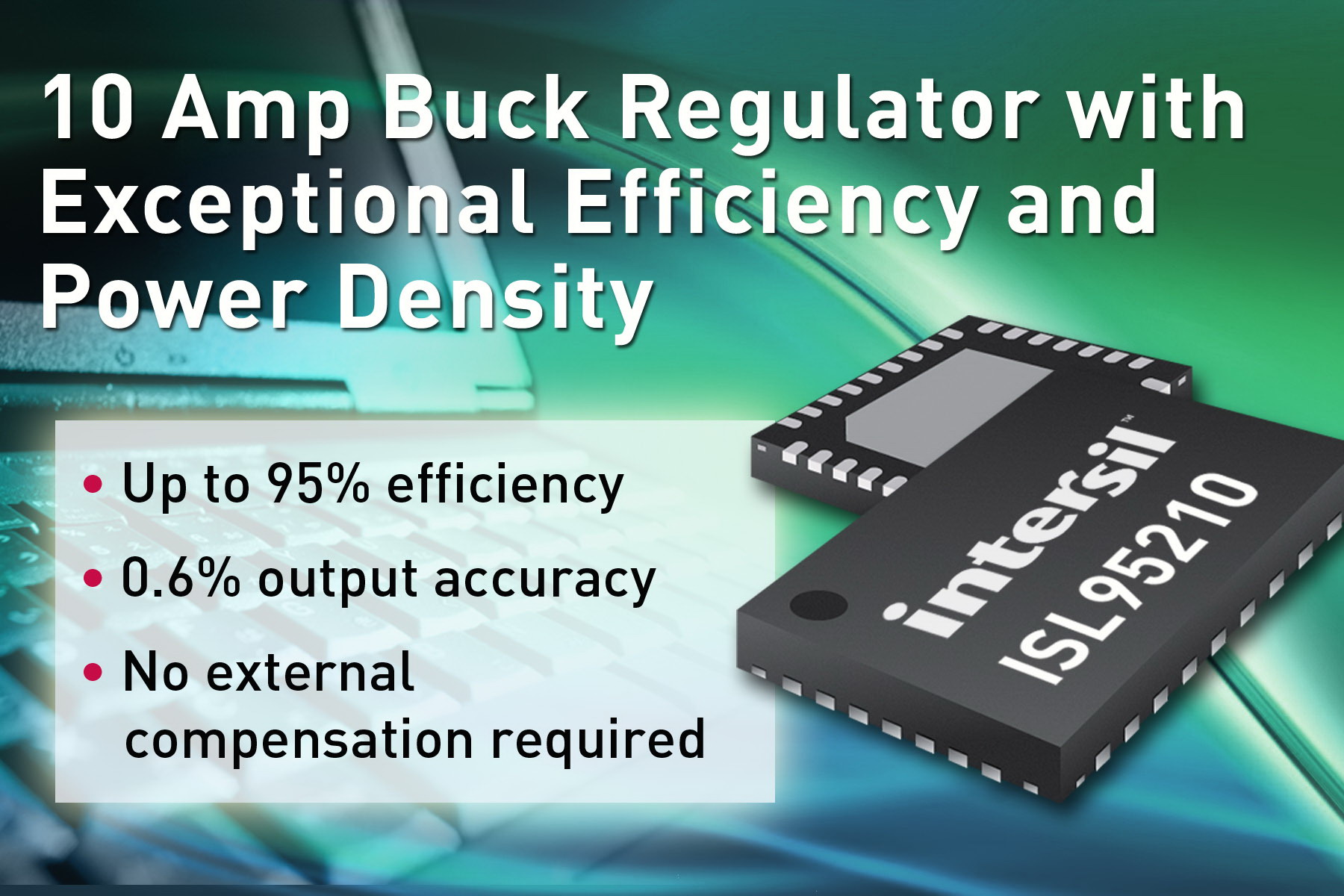 全球高性能模擬混合信號半導(dǎo)體設(shè)計和制造領(lǐng)導(dǎo)廠商Intersil公司宣布,推出具有優(yōu)異效率和功率密度的最新10A集成式FET同步降壓穩(wěn)壓器---ISL95210。