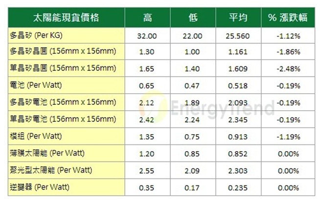 EnergyTrend最新太陽能市場價格調(diào)查