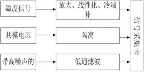 直接采集來的信號由于噪聲等原因不一定能夠滿足采集系統(tǒng)的要求,為了適合數(shù)據(jù)采集設備的輸入范圍,由傳感器生成的電信號必須經(jīng)過處理。信號調(diào)理裝置能夠按照要求放大或者縮小電壓電流范圍,并對信號進行隔離濾波等處理。光伏監(jiān)測系統(tǒng)的信號調(diào)理圖如圖3所示。