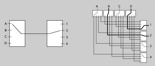 一系列復(fù)雜的開(kāi)關(guān)拓?fù)湓赗F開(kāi)關(guān)中得以采用。矩陣式開(kāi)關(guān)可以實(shí)現(xiàn)每個(gè)輸入與每個(gè)輸出的連接。有兩種類型的矩陣在微波開(kāi)關(guān)架構(gòu)中得以采用—— blocking和non-blocking架構(gòu)。一個(gè)blocking矩陣可將任意一個(gè)輸入和任意一個(gè)輸出進(jìn)行連接,因此其他的輸入和輸出就不能同時(shí)連接。這對(duì)只需在一個(gè)時(shí)刻切換到一個(gè)信號(hào)頻率的應(yīng)用是一個(gè)有效的低成本方案,信號(hào)完整性也更好,因?yàn)橛懈俚睦^電器路徑,特別是避免了相位延遲的問(wèn)題。而 non-blocking矩陣允許多個(gè)路徑的同時(shí)連接,這種架構(gòu)具有更多的繼電器和線纜,因此靈活性更強(qiáng),不過(guò)價(jià)格也更高。
