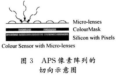APS具有低讀出噪聲和高讀出速率等優(yōu)點,但像素單元結構復雜,填充系數(shù)降低,填充系數(shù)一般只有20%~30%。為了提高像素的填充系數(shù),APS在像素的上方設置了微透鏡(Micro-lenses),如圖3所示。