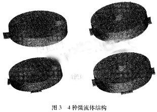 根據(jù)設(shè)計(jì)的4種微流體結(jié)構(gòu),實(shí)驗(yàn)采用fluent軟件進(jìn)行微流體模擬,驗(yàn)證不同結(jié)構(gòu)的可行性,通過(guò)性能上的一些比對(duì),選擇合理的微反應(yīng)室和進(jìn)出樣溝道結(jié)構(gòu)。