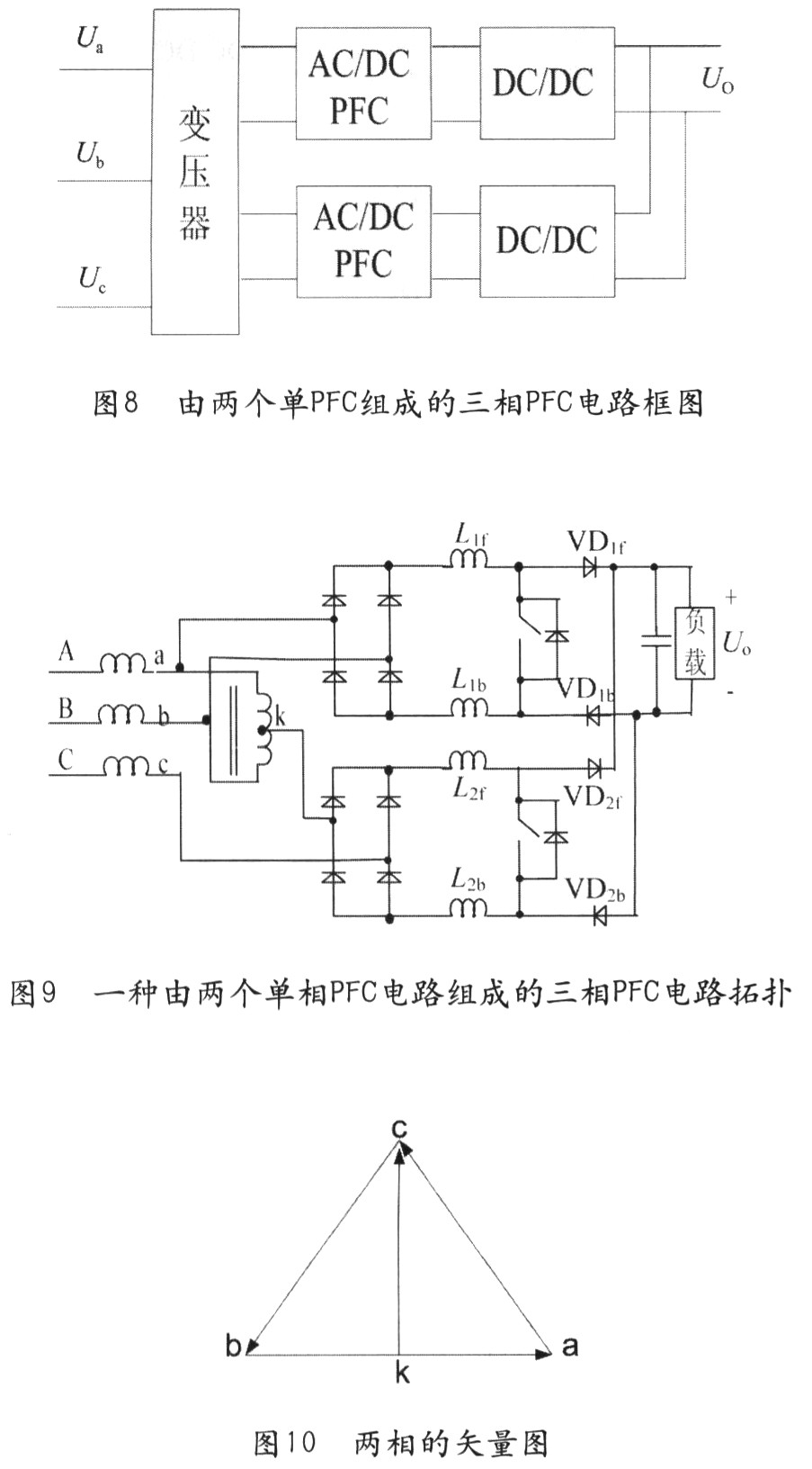 下面將對(duì)由單相PFC實(shí)現(xiàn)三相PFC的幾種方法分別進(jìn)行介紹。