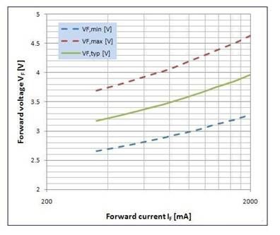 移動(dòng)電話中閃光燈 LED 的高正向電壓和電流以及給定的電池電壓,讓升壓轉(zhuǎn)換器成為最佳的解決方案。驅(qū)動(dòng)大電流時(shí),基于電感的升壓轉(zhuǎn)換器呈現(xiàn)出令人滿意的效率。LED必須為電流驅(qū)動(dòng),因?yàn)檎螂妷翰粌H僅隨溫度而變化,而且也有其自身的差異。正向電壓的這種變化源自于其生產(chǎn)過(guò)程,其變化范圍為 ±20%,請(qǐng)參見(jiàn)圖 1。