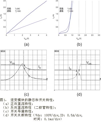 至于其反向特性 (參見圖1(a)),MOSFET中固有的體二極管可充當(dāng)IGBT逆變器中的快速恢復(fù)二極管 (FRD) ;即可以通過電子擴散過程實現(xiàn)快速而平滑的恢復(fù)特性,同時節(jié)省了引線框內(nèi)芯片的占用空間。由于MOSFET比一般FRD尺寸大,其反向壓降小,而且在柵極為高時,該壓降甚至?xí)?,這是因為MOSFET溝道本身就允許雙向電流。
