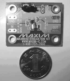以Maxim公司提供的MAX8640Y/Z為例,該系列器件采用SC70封裝,工作在4MHz/2MHz的開關頻率下,能夠在500mA 的輸出電流下保證高效率。該器件適合用于為微處理器或DSP內(nèi)核供電,或者用于I/O供電。所采用的SC70封裝僅為2mm×2.1mm,是業(yè)界尺寸最小的解決方案。