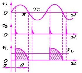 (1)α:控制角。指觸發(fā)脈沖的加入時(shí)間。