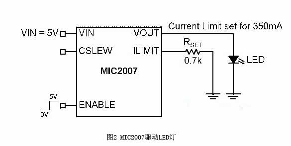 圖1展示了MicrEL公司MIC2007型限流配電開關(guān)圖例。