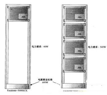 以圖所示的服務(wù)器為例,兩個服務(wù)器來自同一個系列WasteTech""sEscalenteline。左邊的WasteTech""sEscalente5000SUX配置了足夠的硬件,只需要60W的電能。右邊的6000SUX的最高配置安裝上足夠多的硬件后則要消耗540W的電能。然而兩臺服務(wù)器卻使用了同樣的電源。盡管目前的電源使6000SUX獲得了足夠的電能,但是對于消耗電量較少的服務(wù)器而言,則提供了過多的電能。這種過度供電造成了浪費。