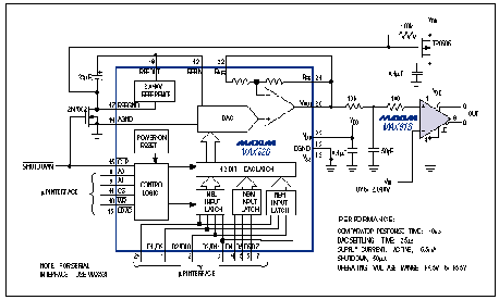 當(dāng)前比較器都能夠很好地處理擺率受限的輸入信號。例如,Maxim公司的MAX913和MAX912在這方面尤其有效,因為它們在線性工作區(qū)能夠確保穩(wěn)定。圖5列舉了MAX913在高速、12位應(yīng)用中的性能。圖6電路(超低功耗8位轉(zhuǎn)換器)在不使用時可將其關(guān)閉以節(jié)省能量。