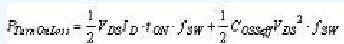 在這一公式中,ID為剛導(dǎo)通后的漏電流,VDS為開(kāi)關(guān)上的電壓,COSSeff為等效輸出電容值(包括雜散電容效應(yīng)),tON為導(dǎo)通時(shí)間,fSW為開(kāi)關(guān)頻率。.