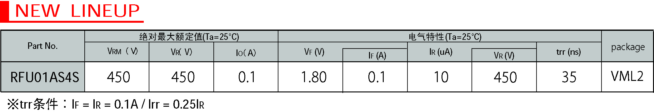 這次,羅姆通過改善結構設計和裝配工藝使封裝得到優(yōu)化,成功開發(fā)出了世界最小的“VML2”封裝(1006尺寸∶1.0mm×0.6mm)快速恢復二極管。與傳統(tǒng)的2513尺寸(2.5mm×1.3mm)相比,體積減少約86%。不僅體積小巧,高達450V耐壓特性也是其特長之一。