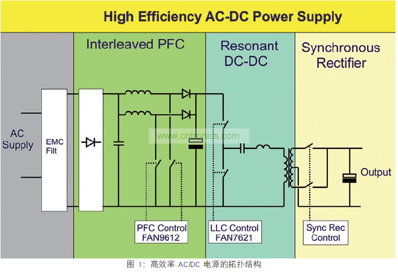 隨著“整個(gè)負(fù)載范圍內(nèi)都保持超高的效率”這一要求成為產(chǎn)品規(guī)格的一部分,設(shè)計(jì)工程師在評(píng)審 AC/DC 電源拓?fù)鋾r(shí)都將減少能耗作為具體的目標(biāo)。 圖 1顯示了一個(gè)能提供一流效率的拓?fù)涫纠?本文由 Future Electronics(EMEA) 公司的技術(shù)項(xiàng)目經(jīng)理John Stephens 編著,應(yīng)廣大 IC制造商的要求介紹了如何處理此拓?fù)渲凶詈笫S嗟闹饕芎牟糠郑狠敵稣麟A段。