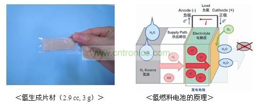 此次開發(fā)的氫燃料電池,使用了加水即可產(chǎn)生氫的固體,可利用水的合成進(jìn)行發(fā)電,因此,發(fā)電時的生成物僅僅是水(水蒸氣),不會產(chǎn)生二氧化碳和有害物質(zhì)(揮發(fā)性有機(jī)化合物:VOC)。廢棄時亦可作為一般垃圾處理,是極為環(huán)保的燃料電池。
