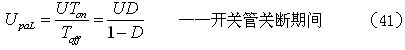 (41)式中,U為電源輸入電壓,Ton為電源開(kāi)關(guān)管的導(dǎo)通時(shí)間,Toff為電源開(kāi)關(guān)管的關(guān)斷時(shí)間,D為占空比。而