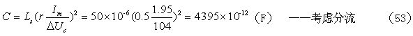 當考慮電阻R對電容器C充電的分流作用,以及開關(guān)管由導(dǎo)通到完全關(guān)斷期間,漏極電流對電容器C充電的分流作用時,根據(jù)(36)式,假設(shè)分流系數(shù)r = 0.5 ,則(52)式還可改寫為: