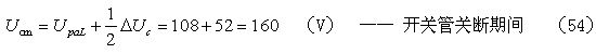 這里順便說明一下,為什么(53)式中的分流系數(shù)取值為0.5,而不是其它數(shù)值。因為,分流系數(shù)r的取值范圍是0~1,它是一個動態(tài)系數(shù),它的大小,除了與輸入電壓和輸出功率和RCD電路中電容、電阻的大小有關(guān)外,還與開關(guān)管的關(guān)斷時間,以及電流大小有關(guān)系。
