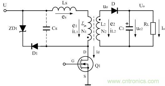 試驗時,以輸入電壓和輸出功率的最大值為條件,然后,由大到小,選擇不同容量的電容器做試驗,用示波器觀測電源開關(guān)管D-S兩端的電壓,直到Uds與最高耐壓BVm兩者之差能滿足余量要求時,為最佳結(jié)果。