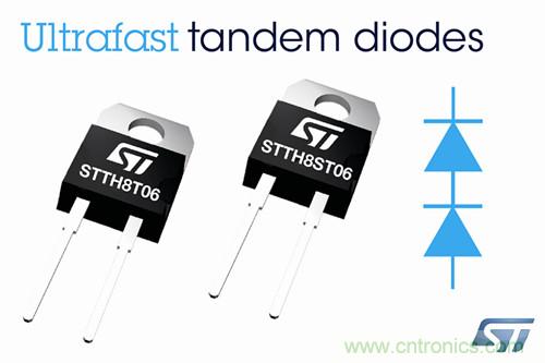 ST超高速串聯(lián)二極管自問(wèn)世以來(lái)一直深受市場(chǎng)歡迎,至今出貨量已超過(guò)5千萬(wàn)顆。為了讓設(shè)計(jì)人員以更高成本效益提升電源、太陽(yáng)能逆變器和電動(dòng)交通工具充電樁的能效,意法半導(dǎo)體(ST)推出了第二代600V、8A/12A超高速串聯(lián)二極管(tandem diodes)。與ST第一代產(chǎn)品相比,新的超高速串聯(lián)二極管產(chǎn)品降低了反向恢復(fù)電荷(QRR,reverse-recovery charge),從而能夠最大限度降低開(kāi)關(guān)損耗,能效優(yōu)勢(shì)高于標(biāo)準(zhǔn)超高速二極管。QRR 參數(shù)變低還有助于加快電路設(shè)計(jì)的微調(diào)速度,縮短設(shè)備廠商的新產(chǎn)品上市時(shí)間。
