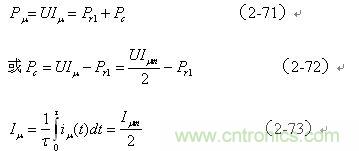 (2-76)式中,Pc為單激式開關(guān)變壓器的半波磁滯損耗平均功率,U為電源電壓幅度;Uc為濾波電容兩端的電壓, 為勵(lì)磁電流的最大值;R1為負(fù)載電阻。
