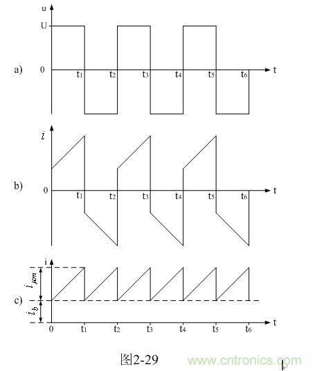 我們從圖2-29-b中可以看出,在輸入電壓作用期間,勵(lì)磁電流