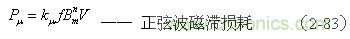 (2-83)式中, 為輸入電壓為正弦波時(shí)變壓器鐵芯的磁滯損耗[W]; 為與鐵磁物質(zhì)有關(guān)的系數(shù)(由試驗(yàn)決定);