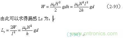 如果我們拿(2-94)式與(2-62)式或(2-89)式進(jìn)行對比,可以看出,線圈漏感與線圈的電感是沒有本質(zhì)區(qū)別的,只是磁路和磁感應(yīng)強(qiáng)度以及介質(zhì)導(dǎo)磁率等參數(shù)需要根據(jù)實(shí)際情況來決定。
